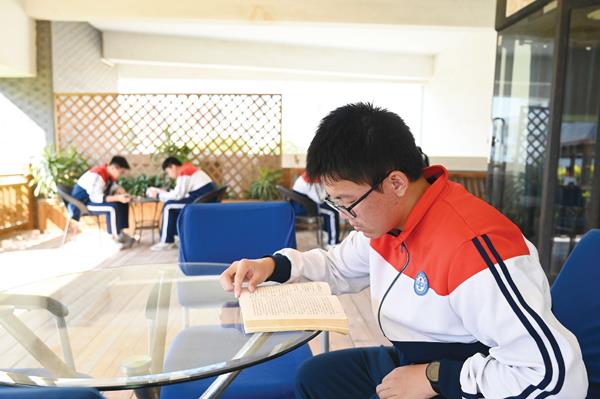 记者走进图书馆看到,一楼是该校前身海滨书院,如今重建于馆内,更添一份书香气息。高二(8)班的学生们正在上阅读拓展课《论语》,老师以“走进凡人孔二先生”为主题,引导学生以人物为线索,对《论语》一书进行纵读。学生时而提笔记录,时而分组讨论,师生互动频繁,课堂氛围轻松。学生陈晓丽告诉记者,语文和英语学科阅读量较大,他们每个月至少有4节课会在图书馆里上课,遇到不懂的可以及时查阅资料,每节课老师还会预留出十几分钟进行知识点延伸,比在教室上课更有趣。