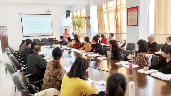 在隔壁数学集备室内,主讲人列出几个学生常见问题,如注意力不够集中,写作业马虎出错等,老师们各抒己见,最后总结出行之有效的方法。谈及集备,高中数学备课组组长谢绍剑表示,落实“双减”,在于“减负提质”,而要达成这一目标,需要变革传统课堂,生成高效课堂。备课是教学过程中一个核心环节,教师要从不同角度和视角进行结构化准备,从学生的学习活动、情感发展等需求出发,研究教材,大胆创新,高效利用课程资源,搭建高效教学平台。