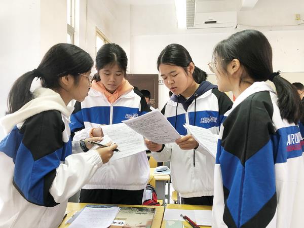 学生为主,教师为辅。教与学方式的转变,也对老师们的教学能力提出更高的要求。在学校集备室里,记者看到,高中语文老师们正围坐在一起,探讨课外作业的设计。