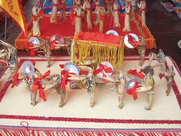 李氏斋菜在民间传统供品制作格式的基础上,将食品工艺美术融入供品中,推陈出新,创作出数十种不同造型的斋菜。其制作方法有两种:一是素食仿生,用面粉制作的“水族朝圣”36盘,其中有鱼、虾、蟹、蚌等36种;二是收集外形奇特的螃蟹、龙虾、贝类等水产品,将其煮熟掏空内脏,然后进行烘干、防腐处理,最后根据内容情节对它进行拟人造型,附加所需的各种道具饰品,每一盘荤食斋菜形象奇特、造型逼真、巧夺天工、趣味横生。如“龙宫车鼓”,前两只龙虾提灯笼,中间一只龙虾扛大旗,后面龙虾列队让“手”中银钹翻飞,队伍中间龙虾把大鼓敲得震天响,还有“十音队”“扑碟”等,形态各异,栩栩如生。