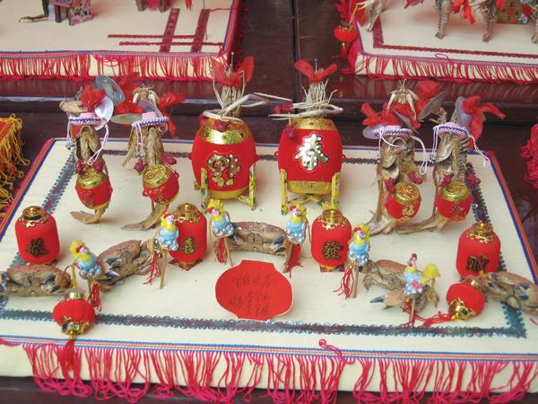 2.服饰、道具制作精美。根据设计内容情节对它进行拟人造型组合,披上艳丽服饰,配上小巧玲珑的道具,组合成一盘盘形象奇特、造型逼真、巧夺天工、妙趣横生的具有地方特色的民俗活动场景。