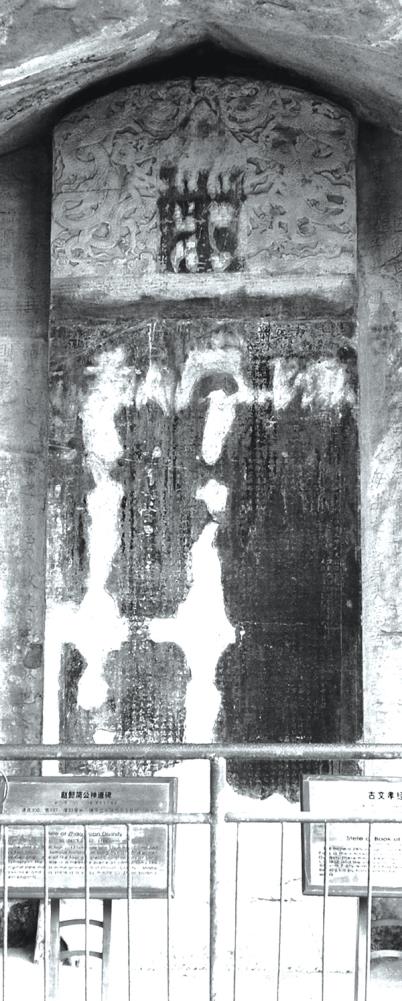 所以,周至既有原碑,大足之碑当为复刻。原四川文史馆馆员、研究大足石刻专家陈老先生认为,大足北山之碑,是赵瞻的后人赵范所刻。“赵范为(赵)瞻之曾孙辈,复刻同时,在宋孝宗之世。其年党争已息,民愤亦平,(赵)范时适在昌州(大足),故出其原拓本与《古文孝经》,一并复刻于北山,其用意固在于不忍祖德之堙没,而(蔡)京书亦得附托以传”。