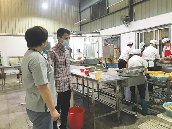 图为华亭市场监督管理所工作人员,在罐头生产企业检查现场,指导企业如何提高规范管理确保产品质量。