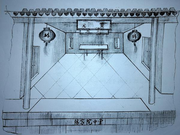 天庭台阶上林家院居中位置的中堂,坐北朝南,东西宽约5米多,南北长约15米多,房高4米多。东西壁是白色粉墙。中堂南沿台阶上铺有一块6米长1米宽20公分厚的由青石精琢而成的大整石,表面光亮如镜,庄重大方。那是林家院中堂的镇堂之石。中堂的地面用粉红色的地砖铺就,整洁敞亮。中堂北壁约4米长的供桌上摆满了四个黑色的柜橱,柜里摆放着记有历代先祖生卒年以及官职等履历的木牌。中堂上最亮眼的是悬挂在中堂屋梁上的两块大匾。大匾宽约2米,高约1米。其周围镶嵌有十几公分宽的饰边,漆成大红色和粉红色两种。乳色的衬底上书有两字约高40公分的“贡元”大楷体,下方有大方官印。这两块大匾给林家院的中堂增添不少光彩。据考,“贡元”指的是对贡生的尊称。史上科举时代挑选府、州、县生员(秀才)中成绩或资格优秀者升入京师的国子监读书成为贡生。“贡元”意谓以人才贡献给皇帝。昔日中堂大梁上的这两块大匾留下了许许多多故事,如今的后辈们举目细察这两块大匾思考人生展望未来。