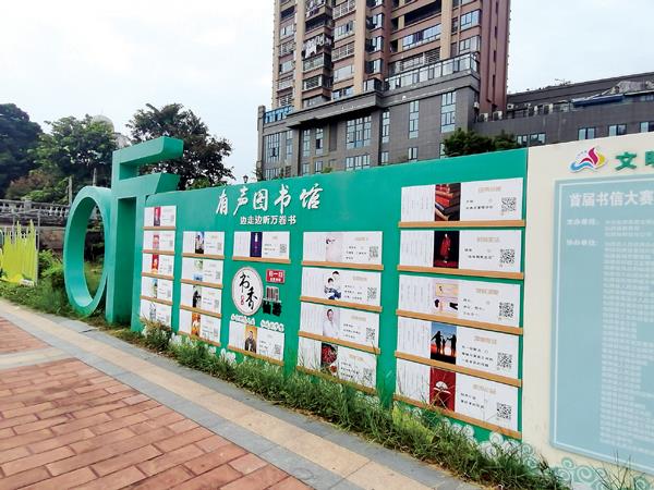 图为位于县城兰溪大桥下公园步游道的“有声图书馆”。
