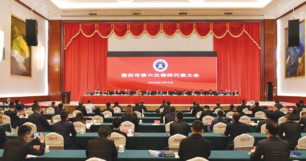 本报讯 5月15日,莆田市第六次律师代表大会召开,选举产生新一届市律协领导班子成员。省司法厅党委副书记、副厅长、政治部主任林安泰,市领导郑加清、林清忠、陈文荣、林惠中出席。