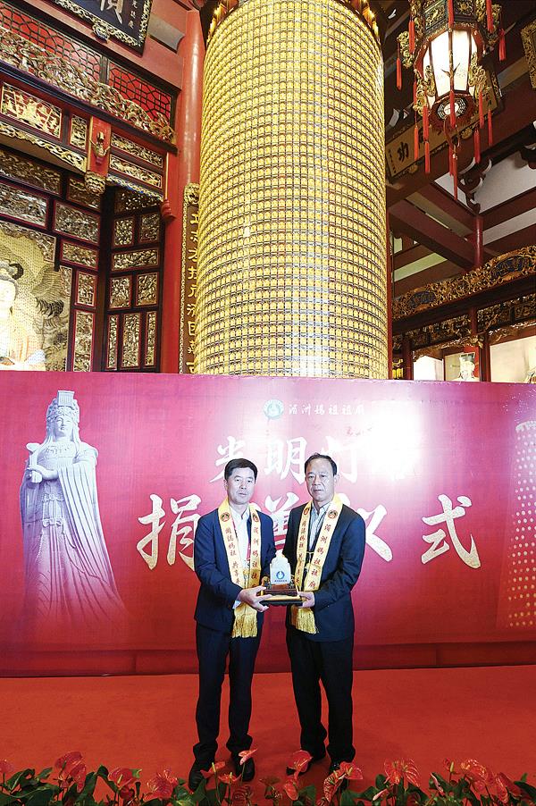 上午9时许,仪式如期举行。湄洲妈祖祖庙董事会董事长林金赞向广东广州迎海集团股份有限公司董事长李伟颁发光明灯塔认捐功德证书,感谢李伟董事长一直以来对祖庙妈祖文化事业的支持。