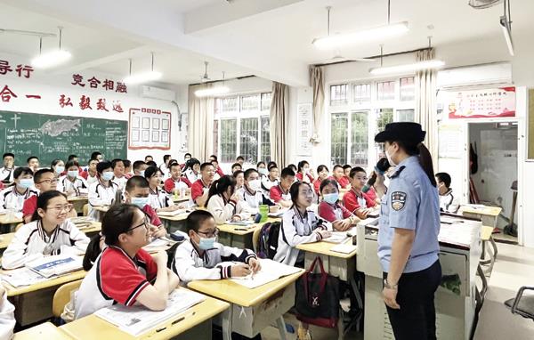 本报讯 为加强校园法制宣传教育,增强广大师生法制观念和法律意识,打造文明、和谐、平安的校园环境。5月13日下午,镇海派出所社区民警吴玲玲以校园法制辅导员身份开展普法活动,促进青少年知法、守法、用法,营造和谐法制校园氛围,护航青春助力成长。
