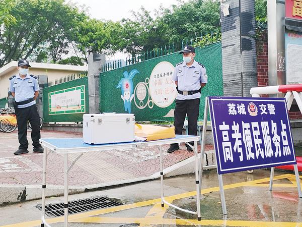 6月7日上午,莆田四中考点,荔城区拱辰街道党工委组织护航高考志愿服务队