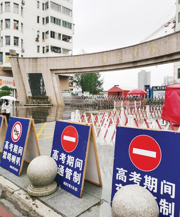 6月7日上午,莆田三中考点,考场外的交通管制标志特别醒目