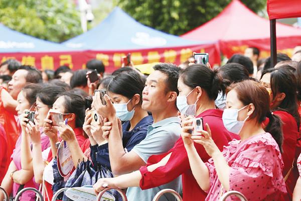 6月7日上午,莆田一中考点,家长穿着寓意“开门红”的衣服