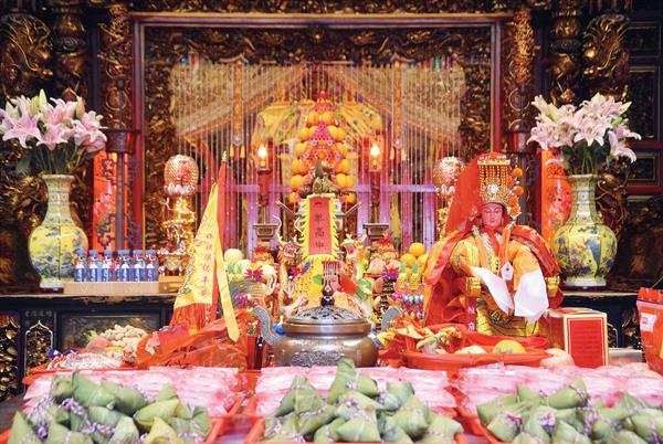 上午8时许,台胞王荞蓁、陆静怡,妈祖中学家委会成员及祖庙妈祖义工齐聚祖庙妈祖大学堂,一同为备考学子制作手工粽子。活动现场,两岸妈祖义工一边捋粽叶、做漏斗、填糯米,一边交流孩子们的备考情况,气氛融洽,令人倍感温馨。
