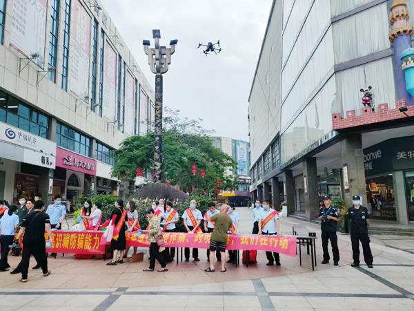 本报讯 为有效预防养老诈骗违法犯罪,仙游县公安局巡特警反恐大队“点线”结合,依托五华城空管站,出动无人机加强治安巡逻管控的同时开展反诈骗宣传。5月31日,巡特警反恐大队无人机战队组织警力利用无人机在鲤中步行街开展反诈宣传。