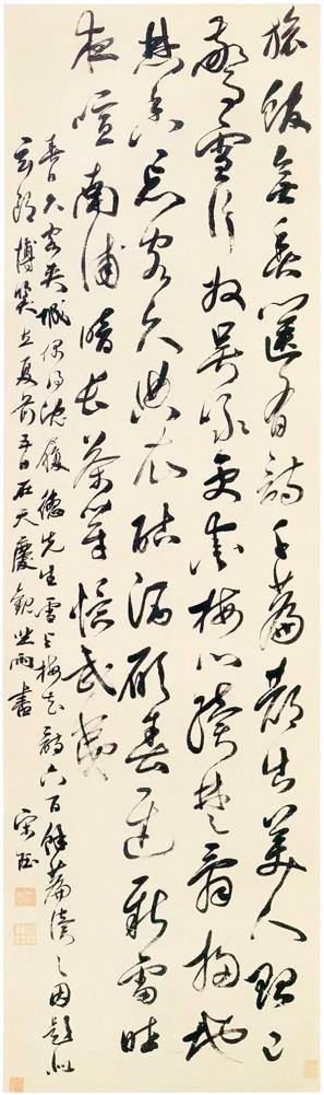 宋珏《行书七律诗轴》痛快淋漓,一气呵成,大小字错落呼应,浑然一体,更具韵律和谐之美。