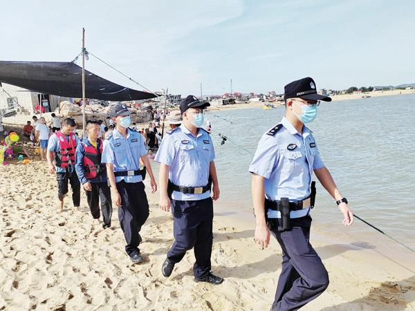 “目前,我们沿海村居的群防群治队伍也自发组建了安全巡防队作为补充,平时开展沙滩巡逻和游客安全提醒,关键时候还能发挥险情预警功能,为派出所提前介入险情处置提供信息援助和协力营救。”平海派出所负责人如是介绍。