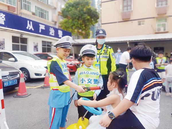 本报讯 元气盛夏,童真恣意,为进一步增进警娃和警爸警妈之间的了解和沟通,近日,城厢交警大队组织警娃们走进警营,体验交警的工作日常。