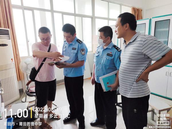 本报讯 为进一步抓好校园安全管理工作,创造良好的校园环境,保障学校师生安全,连日来,龙桥派出所社区民警深入辖区中小学及幼儿园,在开学前进行全面细致的检查。本次检查,以反恐防暴设施、疫情防控设施、校园用电设施及线路、消防设施等为检查重点,从疫情防控安全、治安防范、消防安全、建筑物安全、校内设施设备安全等方面进行了详细检查。检查过程中,民警认真细致,不放过任何容易出现安全隐患的漏洞,并对检查中出现的安全隐患问题做好记录,制定措施,督促学校及时整改,坚决消除校园安全隐患,确保校园师生能够有一个安全稳定的校园环境。通过此次检查,进一步加强了校园安全防范工作,强化了各项安全管理措施,切实做好安保护学工作,为全校师生提供一个良好的工作学习环境。(林剑清)