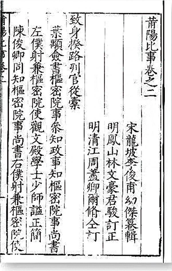 三是记事真实,传承历史。《比事》作者心怀对历史敬畏之心。广征博采,考异史事,注明史源,征信有则,历十载始成书。除传承旧史前志外,广泛采掇相关人物的地方文献资料,包话文集、行实、碑碣、书尺等。对旧志史料亦细加辨伪存真,乃至实地考察。是故,整体上记述真实可靠,堪为莆郡一部信史。清翰林学士阮元《四库未收书总目提要》曰:“莆阳人旧志,如郑侨《莆阳人物志》,以及赵彦励、陆炎所著《莆阳志》,今多散失。俊甫此编,时见采录,且属辞有法,纪事覈真,可与《汝南先贤传》《襄阳耆旧志》并传也”。其学术价值另有专文进一步论述。