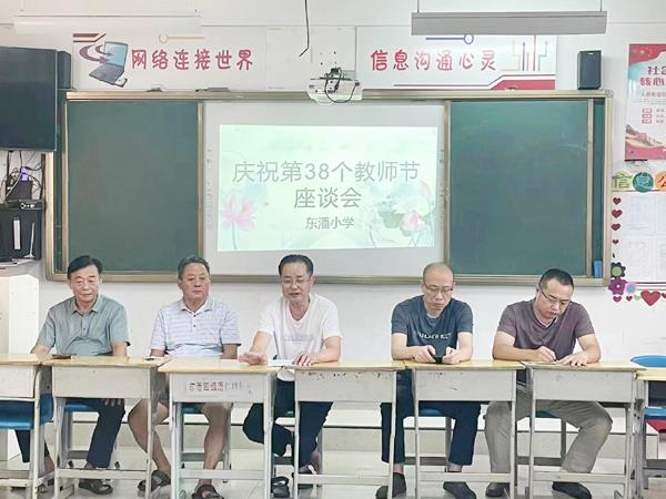 9月9日,月塘东潘小学召开“迎接党的二十大,培根铸魂育新人”——东潘小学庆祝第38个教师节表彰暨奖教奖学座谈会。全校教职工和包校领导以及东潘社区老人协会成员参加会议。