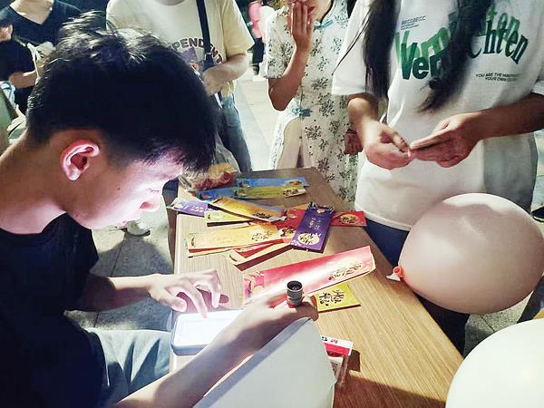 “我曾经跨过山和大海,也穿过人潮人海……”猜歌名活动开始,吸引了一大批同学围观;“中了,中了”,这是投壶胜利的同学激动欢呼声……“就是那个在我家那边的纪念馆,我跟你们说过的……你们快想想呀”,同伴面露茫然地在脑海里苦苦思索,而提示者急得手舞足蹈,在“蒙眼作画”活动中上演着这样一幕;“我中状元啦!”博饼游戏中,同学们炫耀着自己的战绩;“moon、noodle、eat……”单词接龙活动中同学们沉着应对、快速反应,挑战成功的同学们脸上洋溢着欢乐的笑容。
