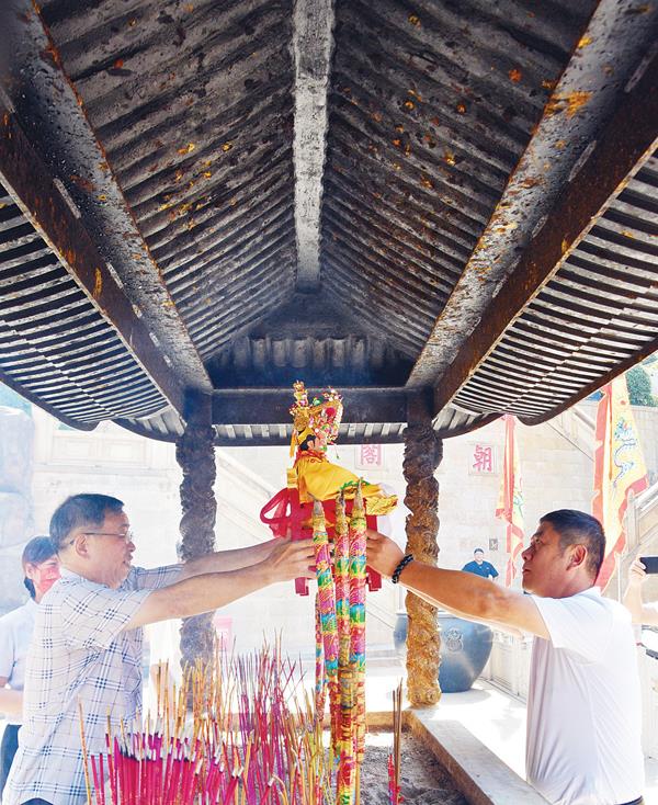 9月5日,湄洲妈祖分灵仙游县妈祖文化研究会客山妈祖宫(圣后宫)仪式在湄洲妈祖祖庙天后宫举行。湄洲妈祖祖庙董事会董事林玉美代表湄洲妈祖祖庙董事会对众人的到来表示热烈欢迎,并陪同仙游县妈祖文化研究会会长王桂聪一行举行三献礼仪式。