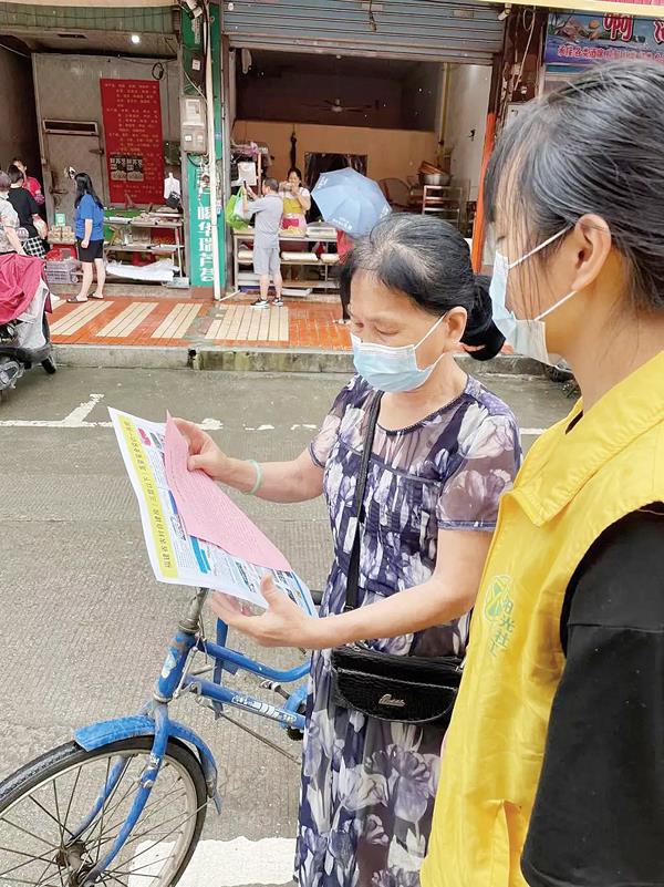 社工通过分发宣传单和讲解安全事故范例的方式向周边群众介绍为什么需要开展安全生产月活动,安全生产月活动有什么意义。引导周边群众注意安全生产,对生产过程中的不安全因素进行整改。