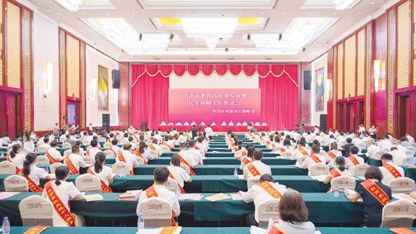 本报讯 在第38个教师节来临之际,9月8日下午,全市教育高质量发展暨民生保障工作推进会召开,深入学习贯彻习近平总书记关于民生工作的重要论述,学习贯彻习近平总书记给北京师范大学“优师计划”师范生回信精神,嘉奖全市教育战线年度先进集体和先进个人,对推动教育高质量发展工作和民生三个“十大工程”进行动员部署。