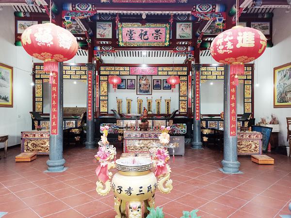 郭桂方又带笔者到崇祀堂左帐,看到留存龙眼木材质的六尊古神主牌上分别用金粉楷书“二世祖、宋邑庠生、讳斌朝文府君,妣游氏孺人之神主”,“八世祖、临安府承务郎、道卿平畴一府君,妣高氏安人之神主”,“八世祖、将仕郎、元旌表孝友、讳佐卿公善二府君,妣赵氏安人之神主”,“九世祖、宋赐进士、清漳教授、讳廷炜沧边府君,妣康氏安人之神主”,“高祖考、明儒士、讳一鸾于精三府君,妣陈氏孺人之神主”,“显考、清诏赐寿官、讳弥□琨岩三府君神主”。其中有八世祖郭道卿、九世祖郭廷炜两位孝子的古神主牌,保存至今,十分难得。