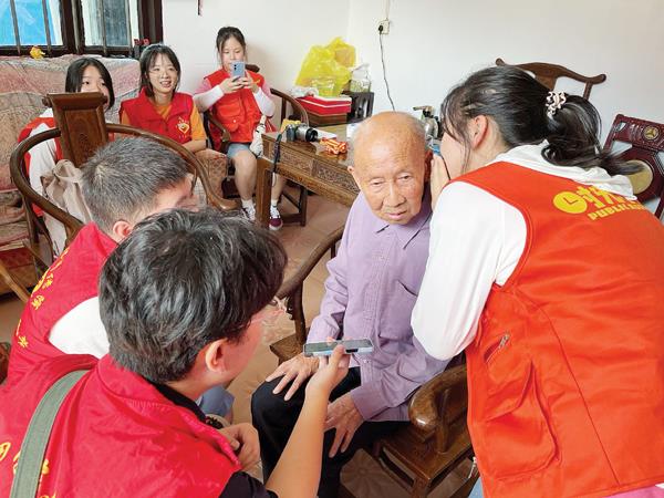 ▲时光小分队指导老师代表莆田市老区促进会慰问邱春芳老人。 梁菲菲/摄