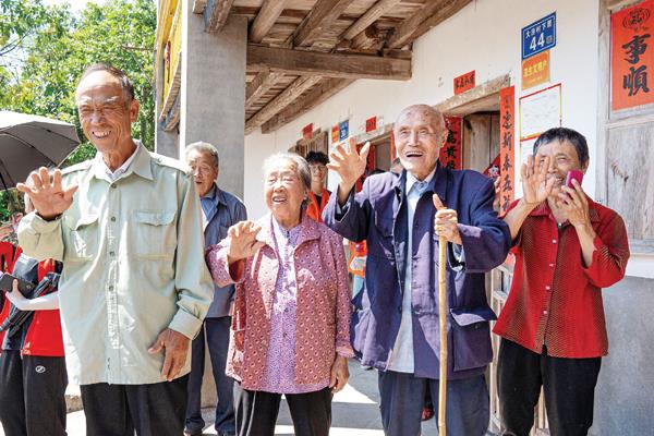 ▲黄洋村村干部和时光小分队代表莆田市老区促进会慰问许玉棣老人。 陈晓威/摄