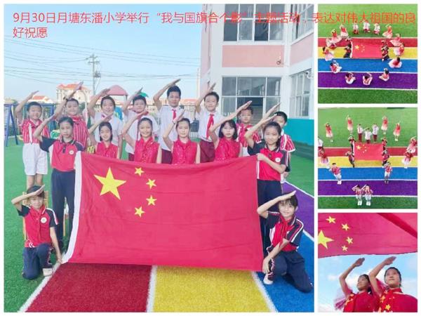 9月30日,在全体师生的瞩目下,各学校举行了庄严的升旗仪式。东潘小学三年级2班的林卓敏同学发表了国旗下演讲,她代表全校学子承诺:作为新世纪的小学生,将发誓从小事做起,书写中华之爱,以心中红心,献礼中华。最后在各位老师精心的组织下,举行了“我与国旗合个影”主题活动,表达全体师生对祖国的美好祝愿,祝福祖国繁荣昌盛。(郑秀云 张燕妹 柯泽萍)