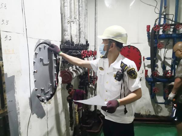海事执法人员立即启动船舶安检程序,全面细致检查时发现该轮还存在机舱底层应急逃生通道防火门自闭器失效、四层甲板皮龙箱内缺两用型水枪等15个缺陷,其中滞留缺陷4项。鉴于该轮缺陷严重,影响船舶航行安全,该处安检人员立即启动相关程序,对“尚***”轮依法采取滞留措施,并将检查情况告知船方,加强安全宣传教育,督促船方立即整改缺陷,及时消除安全隐患。