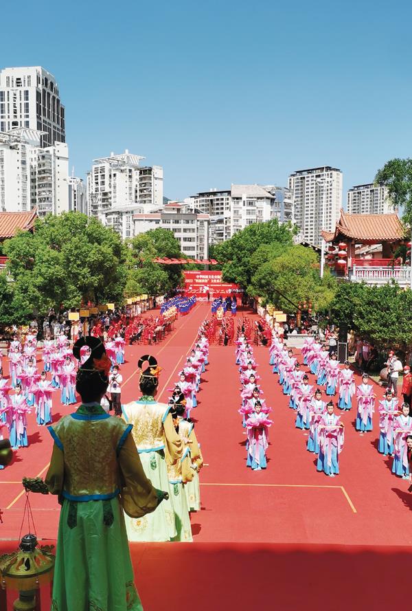 瓣香秋祭日,大爱溯贤流。为追思妈祖,缅怀妈祖的丰功伟绩,10月3日(农历九月初八)上午,由中华妈祖文化交流协会主办,中国工商银行莆田市分行、莆田妈祖文化研究院协办的2022“妈祖秋祭”文化系列活动,在中华妈祖文化交流协会所在的懿明楼广场隆重举行。