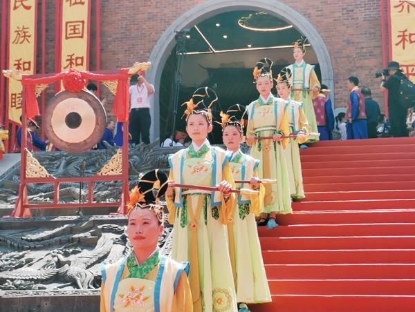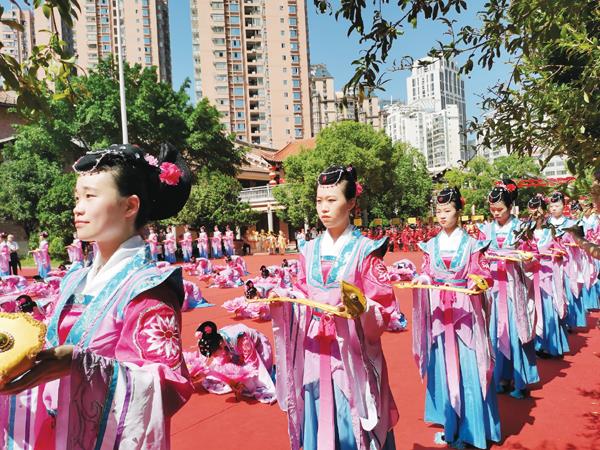 祭典乐团以“五湖四海”布阵,彰显了妈祖文化的和谐特性;默诵区以99人组成方阵,默诵“妈祖保佑”口语和正能量文化内容,彰显了协会秋祭大典的文化特性;36名司礼生环场举妈祖36次历代朝廷的褒封圣旨牌,彰显了协会秋祭大典的艺术特性,成为本次活动抢眼的亮点。