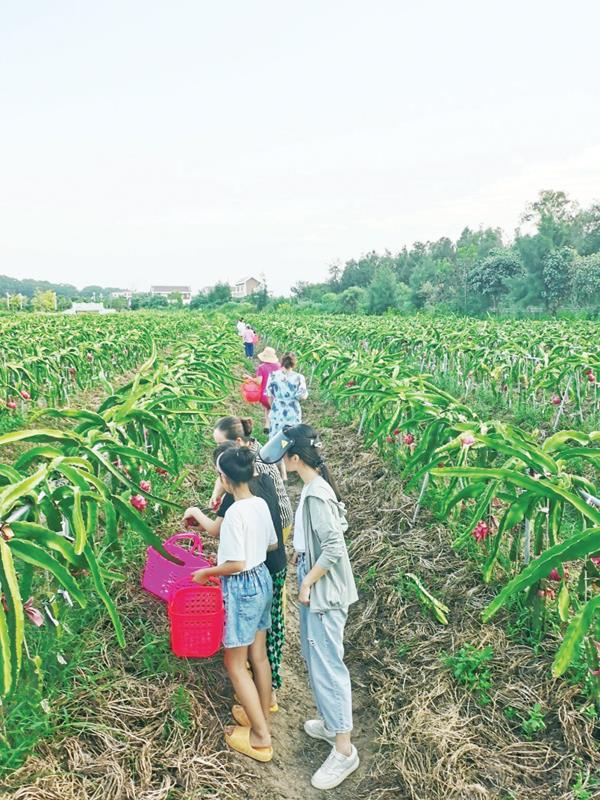 本报讯 今年的国庆长假期间,位于湄洲岛港楼村的新特优休闲农业试验示范基地火龙果采摘区迎来了大批游客,趁着假期带着小孩来体验田园生活乐趣。