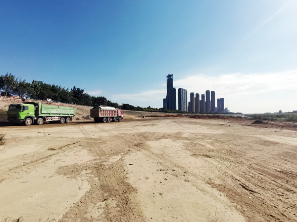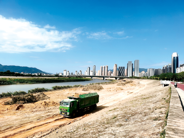 图为10月21日拍摄的木兰溪下游生态修复与治理工程(木兰溪干流十里风光带)一期工程——八二一人民广场(左岸段)施工现场。(时报记者 凌明信/摄)