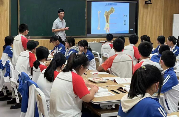 10月25日下午,各班主任召开高效课堂班会,向学生介绍高效课堂的基本结构和各环节用时分配。同时利用班会课完善班级学习小组结构,明确小组成员分工和职责,为高效课堂的常态实施奠定了基础。为进一步提升青年教师教学、教研水平,学校开展了为期十天的青年教师高效课堂剖析课活动。活动中,10多位青年教师借助备课组的集体智慧,课前潜心研究教学,精心设计教学过程,通过高效“6+1”模式,激情授课,各展其才,呈现了一节又一节愉悦又生动的高效课堂公开课。学生们自主学习,合作探究,踊跃发言,积极参与,展示了高效课堂师生互动、生生互动的精彩天地。10月26日下午,黄校长公开执教八年级生物《运动的完成》,为全体教师起了带头践行作用。在短短的45分钟课堂时间里,黄景树校长运用高效课堂“6+1”模式,把三分之二的时间交给学生,充分引导学生阅读、思考、表达、展示,让学生在有限的时间内,最大程度地内化吸收知识。课后组织教师认真点评分析,解构高效课堂,起到了很好的推动作用。