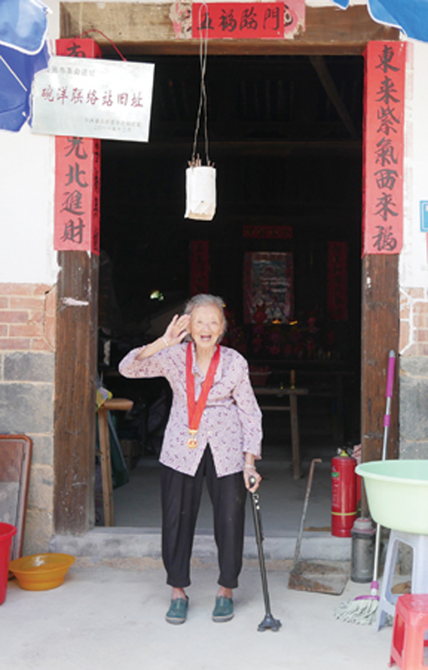 碗洋村如今唯一健在的革命“五老”陈玉兰在联络站旧址前敬礼留念。 林秀敏/摄