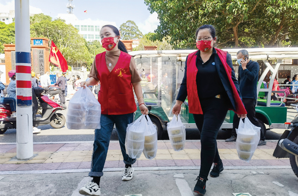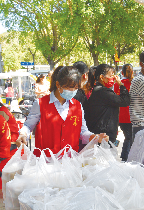 10月26日,湄洲岛全民核酸检测期间,湄洲妈祖祖庙董事会为岛内11个检测点提供1200多份“爱心餐”,向奋战在湄洲岛防疫一线的医护人员、警察和志愿者致敬,为湄洲的深秋注入一股暖流。