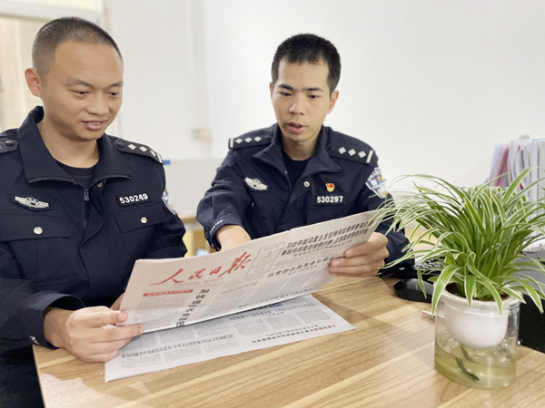 “党的二十大报告中23次提到‘法治’。作为基层公安干警,我们要脚踏实地访民意、真心实意解民忧,将每件‘小事情’办好、办实、办到位,切实提升乡村百姓的安全感、幸福感和满意度。”平海派出所所长王海彬在研读会上由衷分享了自己的学习感悟。(陈玄展)