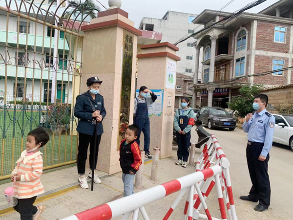本报讯 为进一步强化校园安全防范工作,预防和减少校园交通事故发生,近日,埭头派出所开展护校安园行动。期间,民警根据辖区校园及周边治安情况,在上下学重点时段、重点路段安排专门警力开展“护学岗”执勤,加强高峰时段校园出入口治安秩序和周边交通秩序维护,防止发生安全事故,引导学生有序入学,密切关注校园周围可疑人员、车辆,切实为学生往返校园构筑安全防护屏障。同时,民警向学生及家长进行交通安全宣传教育工作,引导学生、家长自觉遵守道路交通安全法律法规、安全文明出行。(郑晓仙)