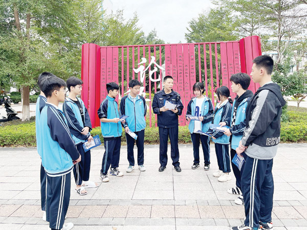 本报讯 为深入推进党的二十大精神进校园,加强校园安全教育法制知识宣传,11月24日,枫亭派出所深入辖区湄洲湾职业技术学校开展校园安全教育法制宣传活动。活动中,民警向同学们发放警民联系卡,向学校师生宣传党的二十大精神与如何预防校园欺凌、道路交通安全、反邪教、以及防范电信诈骗等知识,并用通俗易懂的语言给师生讲解常见的电信诈骗手法和预防对策,提醒学生擦亮双眼,学会做好个人防护。本次活动,共发放宣传材料500份,受众学生500多人。活动得到了广大师生的充分肯定,现场掌声不断,为构建平安校园、法制校园打下坚实基础。(时报记者 林锦堂 通讯员 黄晶)