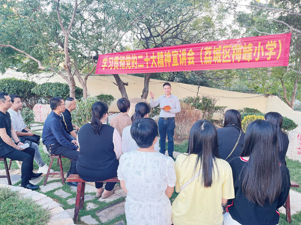 连日来,在梅峰小学教育集团成员校宣讲党的二十大精神已经到十几场次。除了通过宣讲的形式,梅峰小学还把党的二十大精神融入课堂,让党的最新理论创新成果进教案、进课堂。(时报记者 翁志鹏 通讯员 林丽华)