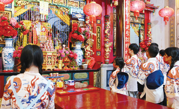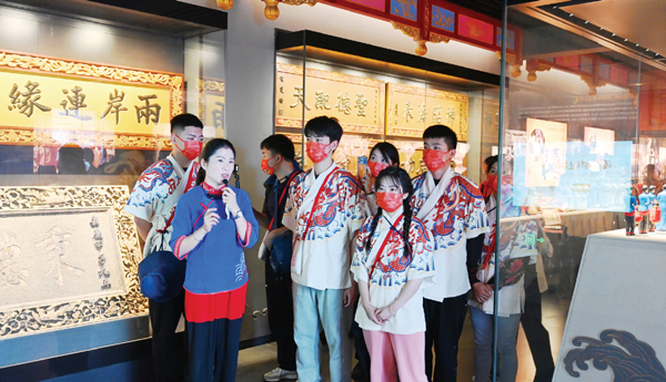 次日上午,泉台青年在祖庙工作人员的带领下,骑着“北斗三号”共享电单车,前往天妃故里遗址公园参观,并依次参访了湄洲上林宫、上英宫等6家妈祖宫庙,深入体验浓厚的妈祖文化氛围。