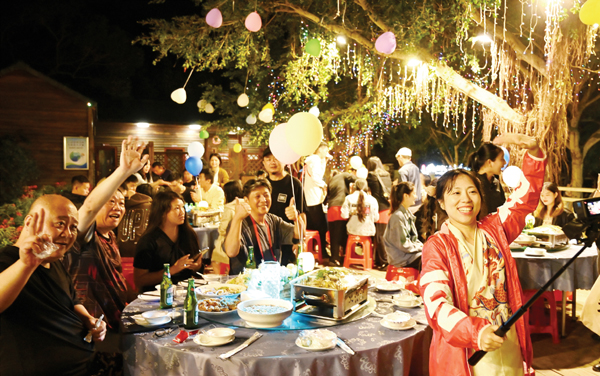 仪式结束后,湄洲妈祖祖庙董事会办公室主任林群华带领祖庙青年职员与泉台青年齐聚湄洲岛省级台湾青年体验式交流中心妈祖平安里,共话妈祖,畅叙两岸情缘。众人享美食、围篝火,现场洋溢着两岸一家亲的和谐氛围。