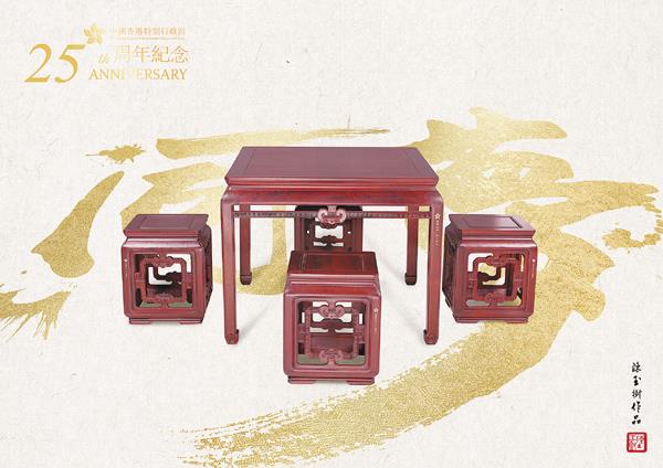 为庆祝香港回归祖国25周年,市政协常委、莆籍古典家具艺术家、四君子艺术中心主席陈玉树应邀创作古典家具作品《同梦》。
