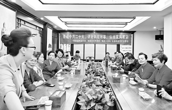 本报讯 日前,民革湄洲岛支部、妈祖文化传承班、海神义信队在湄洲妈祖祖庙莆田会馆会议室联合召开“讲好妈祖故事,弘扬家风家训”分享会。