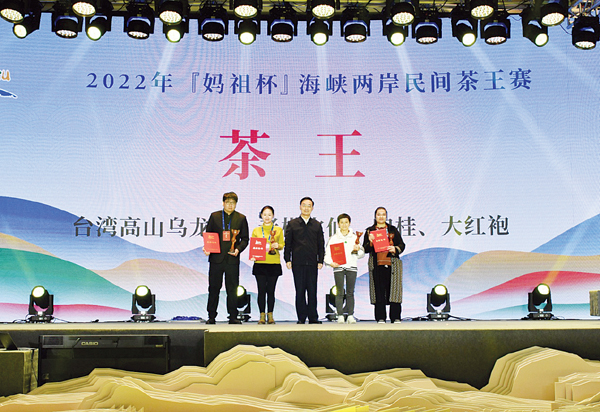 本报讯 2021年3月,习近平总书记来闽考察实地调研武夷山燕子窠生态茶园时强调,要统筹做好茶文化、茶产业、茶科技这篇大文章。2022年12月17日,第七届世界妈祖文化论坛活动期间,2022年“妈祖杯”海峡两岸民间茶王赛颁奖仪式举行,省政协副主席刘献祥,市领导沈萌芽、季翔峰、陈志强、吴宗兴、黄华等为获奖者颁奖。