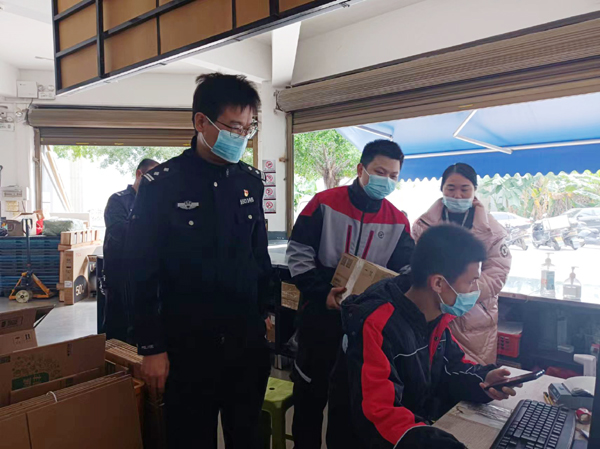本报讯 为进一步做好重点单位的安全管理工作,12月19日以来,鲤南派出所与仙游县公安局治安大队在辖区开展寄递物流业日常安全检查。期间,民警详细检查了辖区快递网点的消防安全通道是否畅通无阻、消防设施是否完好可用、经营环境和来往物件是否进行消毒,并要求相关负责人做好自我防护,规范佩戴口罩,勤洗手、勤通风,主动配合做好疫情防控工作。同时,民警还要求各快递物流网点要严格落实好寄递“三个100%”和物流“两个100%”,做好物品安全管理,要加强员工的培训,并做好寄件人及物品的信息核实和登记。