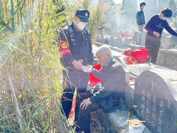 本报讯 12月22日是今年二十四节气中的冬至节气。冬至是二十四节气中最重要的节气之一,从古代就有“冬至大如年”的说法。在仙游,各个地方都有扫墓的习俗。当日上午10时许,鲤南派出所接到了群众报警,称在圣泉村公墓区,有个老人家晕到了。该所综合室接到警情后,立即调度距离现场最近的巡防民警前往查看。民警到达现场后,看到老人家精神状态还不太稳定,便向附近村民要了碗热水给老人家喝。待他缓过来后,经询问,老人家叫林清澄,74岁,家住在鲤城街道东门街,早上一个人过来扫墓突然有点头晕。随后民警搀扶着老人家上车,将他安全送回鲤城街道家中。林某的老伴不住地感谢民警,民警也交代其子女,老人年纪大了,要定期带父母去医院体检,尽量不要让老人家单独外出。鲤南派出所将继续以严明的警风、专业的素养及热忱的服务不断增强群众安全感和满意度,用实际行动践行新时代人民警察“不忘初心、牢记使命”的庄严承诺与使命担当。(陈倩 徐子涵)